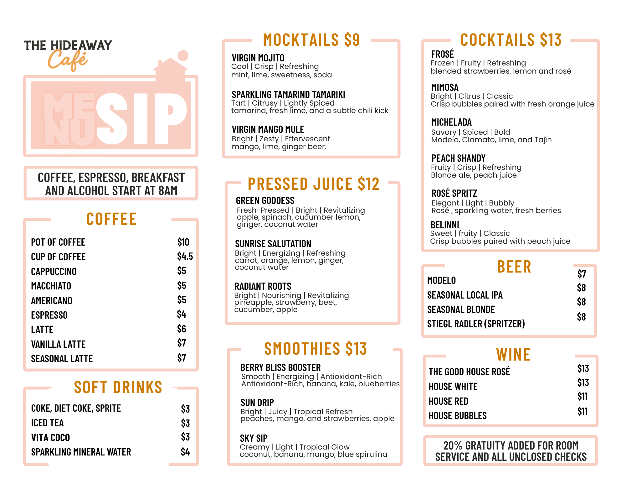 A well-known adage among chefs is, “You eat with your eyes first.” Take a sneak peak at all the delicious dishes The Good House has to offer. Is your mouth watering yet? Wait until you have your first bite!
